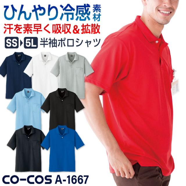 コーコス 接触冷感 吸汗速乾 ポロシャツ 半袖 ドライ 涼しい ひんやり 暑さ対策 無地 シンプル 春夏 作業服 作業着 スポーツ ゴルフ アウトドア メンズ レディース ネイビー ホワイト グレー ブルー ブラック レッド 紺 白 青 黒 赤 CO-COS cc-a1667