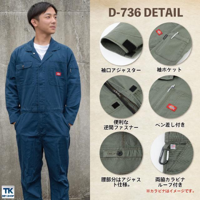 ディッキーズ Dickies つなぎ 日本規格 ツナギ 作業着 作業服 メンズ レディース 長袖 ストレッチ オックス 春夏 秋冬 アウトドア DIY ガーデニング 農作業 おしゃれ かっこいい 男女兼用 ネイビー ブルー カーキ S M L 大きいサイズ コーコス 即日出荷 cc-d736