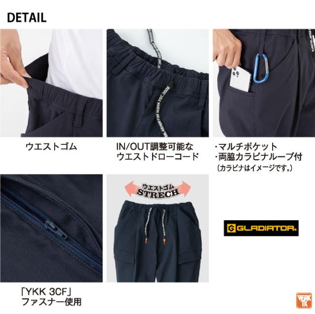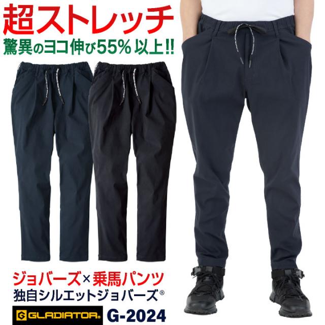 グラディエーター ストレッチ パンツ ジョッパーズ 作業ズボン ワークパンツ テーパード ウエストゴム 春夏 秋冬 作業着 作業服 カジュアル おしゃれ メンズ レディース 大きいサイズ ブラック ネイビー 黒 紺 GLADIATOR コーコス cc-g2024