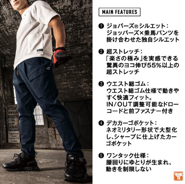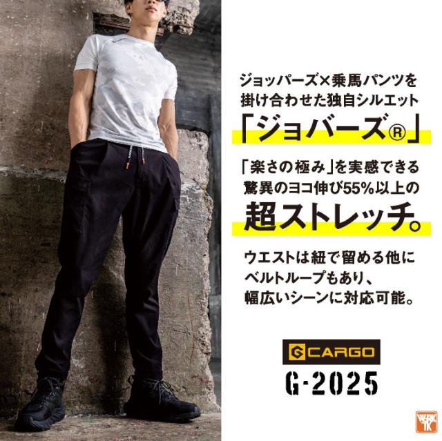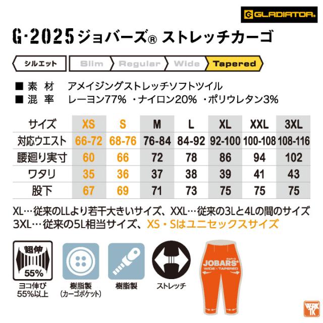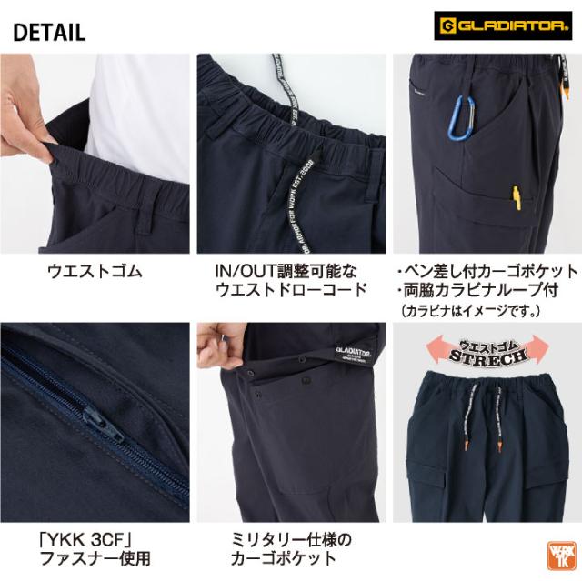 グラディエーター ストレッチ カーゴパンツ ジョッパーズ 作業ズボン ワークパンツ テーパード ウエストゴム 春夏 秋冬 作業着 作業服 カジュアル おしゃれ メンズ レディース 大きいサイズ ブラック ネイビー 黒 紺 GLADIATOR コーコス cc-g2025