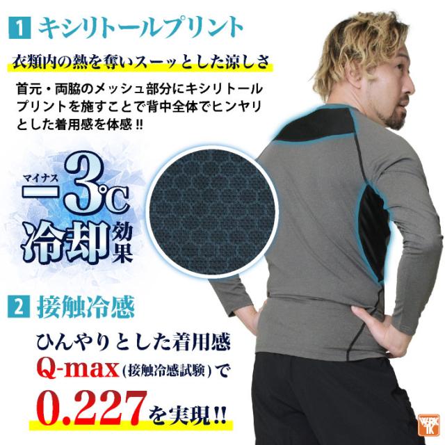 脇と首元にキシリトールプリント入りのメッシュで蒸れ軽減+吸熱。