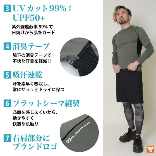 店長おすすめ最強コスパ コーコス 長袖 インナー メンズ レディース GLADIATOR 春夏 吸汗速乾 接触冷感 涼しい UVカット UPF50 消臭 ドライ メッシュ ストレッチ 作業着 作業服 スポーツ おしゃれ ブラック アーミー グレー カモフラ ネコポス cc-g818