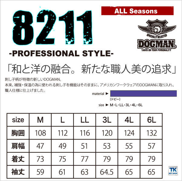ドッグマン DOGMAN シャツ 作業服 作業着 刺し子仕様 作業シャツ