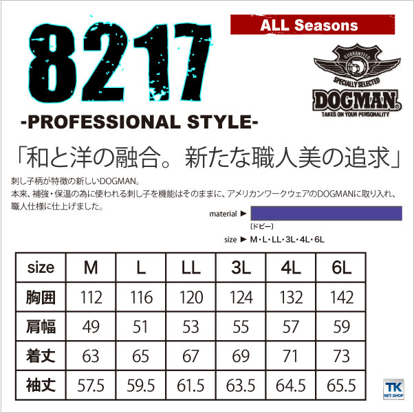 ドッグマン DOGMAN ブルゾン 作業服 作業着 刺し子仕様 作業ジャンパー