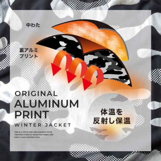 体温を反射し温かさを向上させる裏アルミプリント中わた入りブルゾン。