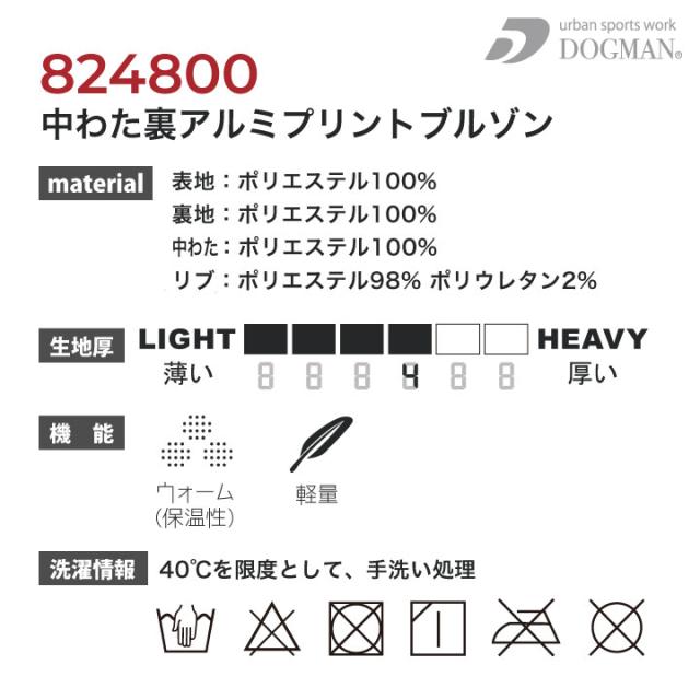 DOGMAN 824800 防寒ブルゾン 中綿 裏アルミプリントプリント 軽量 保温性 防寒 男女兼用