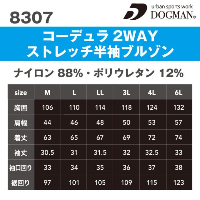 8307 CORDURAファブリック DOGMAN 半袖 ブルゾン ジャケット ジャンパー 春夏 軽量 高耐久 2WAY ストレッチ