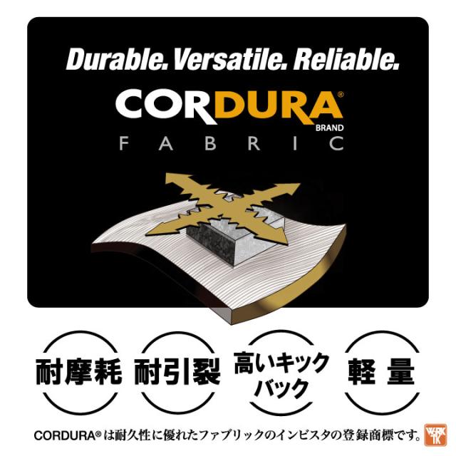 耐摩擦や耐引裂に優れながらも軽量であり、2WAY120%のストレッチ性能は作業時にストレスを感じない動きやすさがあります。