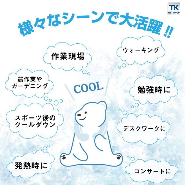 22℃以下の気温や水で冷却固体化するので、どこでも手軽に何度でもクールアイテムとして使用ができます。