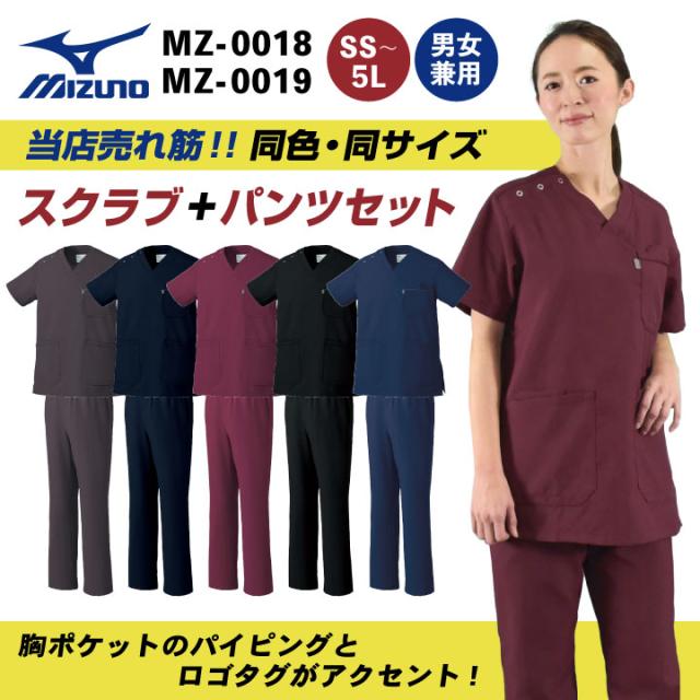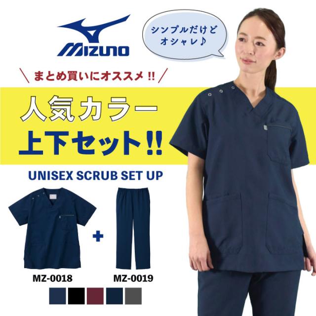 スクラブ上下セットミズノ MIZUNO スクラブ MZ-0018 MZ-0019 白衣 医療 レディース メンズ おしゃれ ユニフォーム ナース 看護師 医者 介護士 トップス 半袖 シンプル S M L 大きいサイズ チトセ 即日出荷 ct-mz0018-setup