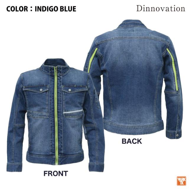 ディノベーション ストレッチ デニム ジャケット 春夏 秋冬 作業着 ブルゾン ジャンパー カジュアル おしゃれ メンズ レディース 長袖 即日出荷 da-20j001ex