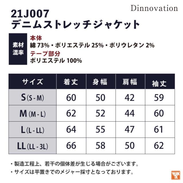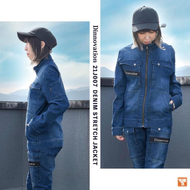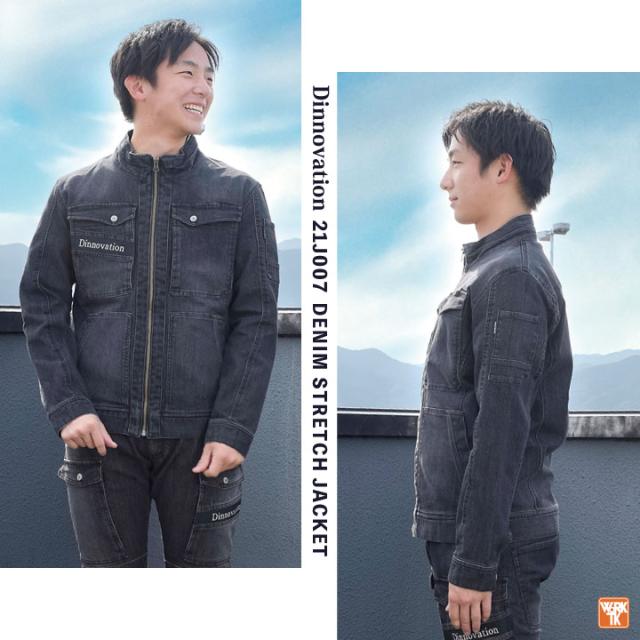 ディノベーション ストレッチ デニム ジャケット 春夏 秋冬 作業着 ブルゾン ジャンパー カジュアル おしゃれ メンズ レディース 長袖 即日出荷 da-21j007