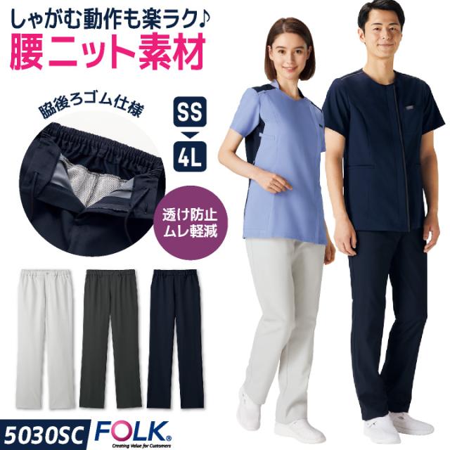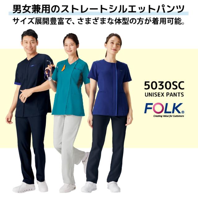 フォーク スクラブパンツ 白衣 医療 看護師 歯科衛生士 薬剤師 理学療法士 介護士 整体師 獣医 受付 事務 美容 クリニック 整骨院 メディカル メンズ レディース 制服 ユニフォーム グレー ブラック ネイビー SS S M L LL 3L 4L FOLK fo-5030sc