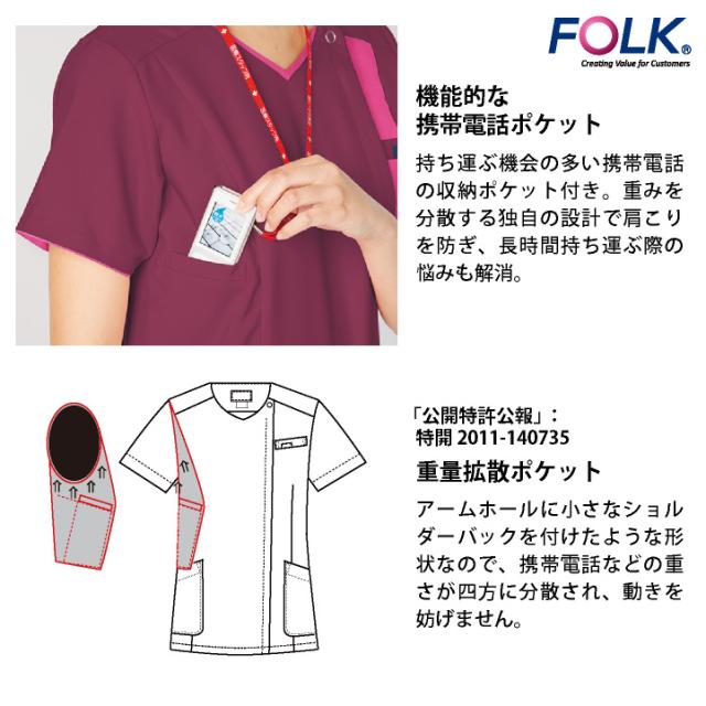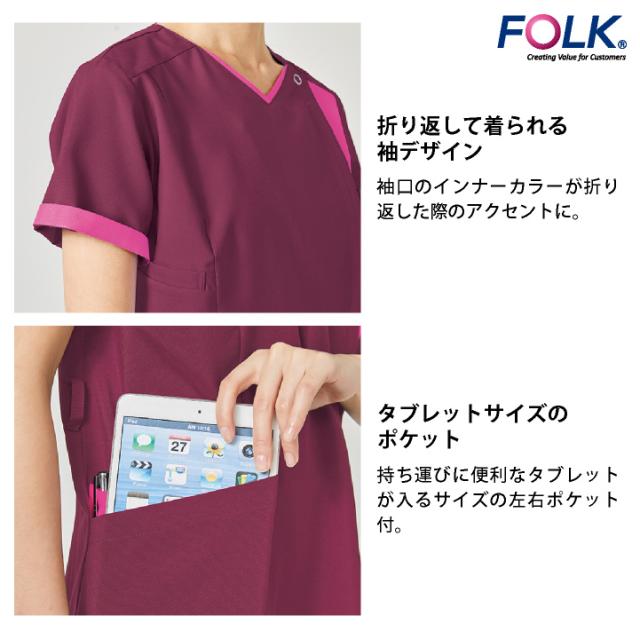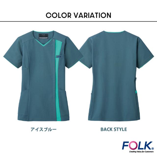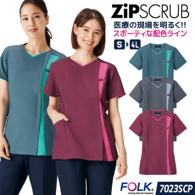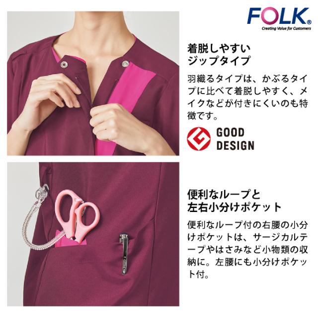 フォーク レディース ジップスクラブ 前開き ストレッチ 白衣 医療 看護師 歯科衛生士 薬剤師 理学療法士 整体師 介護士 クリニック 整骨院 メディカル 女性用 制服 ユニフォーム ブルー グレー バーガンディ S M L LL 3L 4L FOLK fo-7023scp