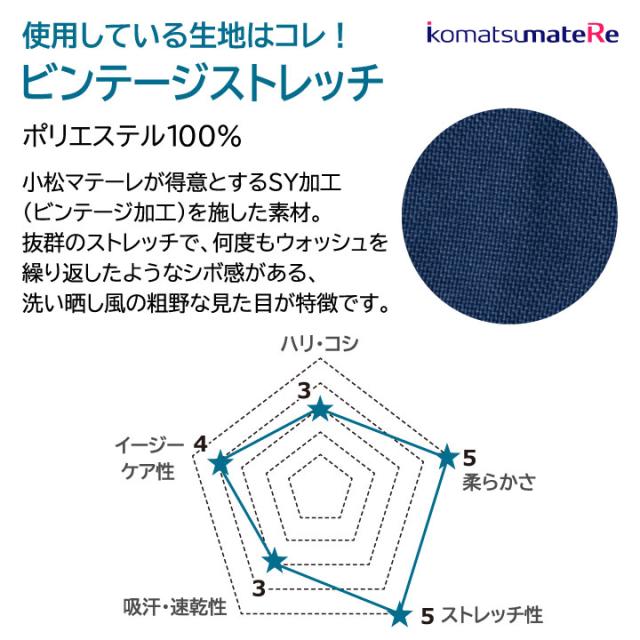 小松マテーレが得意としているDY加工(ビンテージ加工)で何度もウォッシュをしたようなシボ感のある