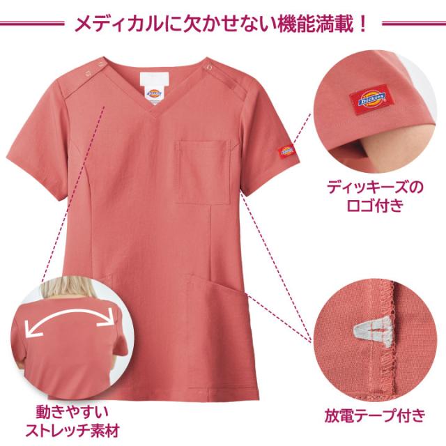 ディッキーズ スクラブ レディース ストレッチ 小松マテーレ 白衣 手術衣 医療用 看護師 病院 クリニック 歯科衛生士 獣医 動物病院 整骨院 リハビリ 介護 理学療法士 チームスクラブ Dickies フォーク 半袖 fo-7071sc