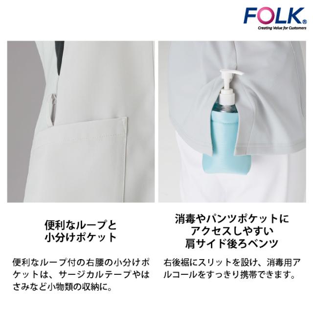 フォーク レディース ジップスクラブ 前開き 白衣 医療 看護師 歯科衛生士 薬剤師 理学療法士 介護 クリニック 整骨院 メディカル 女性用 制服 ユニフォーム グレー ターコイズ バーガンディ ネイビー S M L LL 3L 4L FOLK fo-7094sc