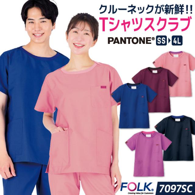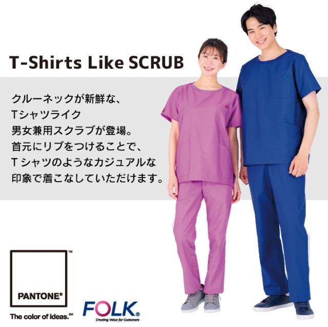 7097SC FOLK スクラブ クルーネックが新鮮な、男女兼用のTシャツライクスクラブ。 Tシャツのようなカジュアルな印象で着こなしていただけます。