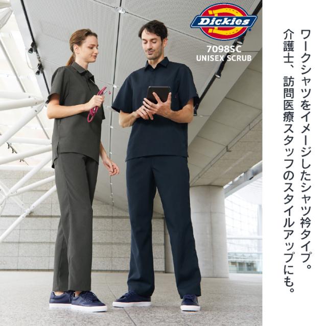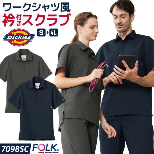 ディッキーズ 衿付き スクラブ シャツ衿 白衣 医療 看護師 歯科衛生士 薬剤師 獣医 事務 クリニック 介護 動物病院 メディカル おしゃれ カジュアル メンズ レディース ユニフォーム グレー ネイビー SS S M L LL 3L 4L Dickies FOLK fo-7098sc