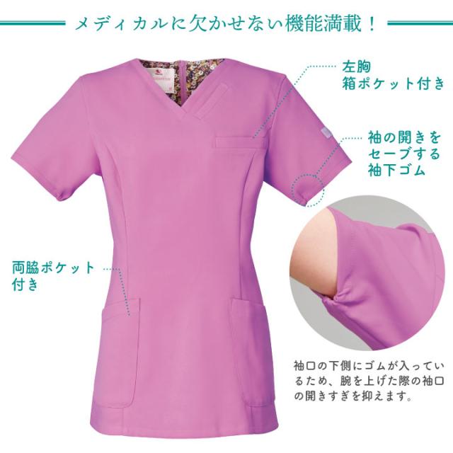 スクラブ ワコール Wacoal FOLK 白衣 半袖 レディース おしゃれ かわいい 背中ファスナー シャツ チームスクラブ 医療 フォーク 半袖スクラブ fo-hi700