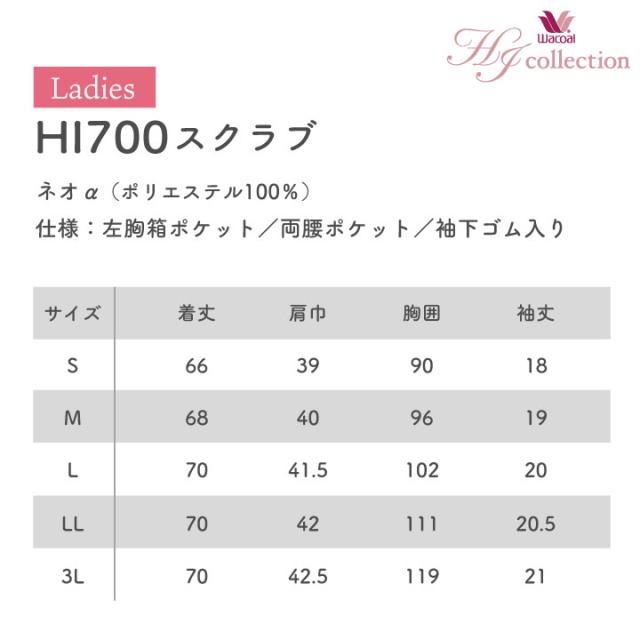 HI700 Wacoal HI collection レディーススクラブ フォーク 女性 看護師 美容 介護