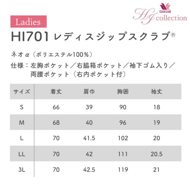 HI701 Wacoal HI collection レディースジップスクラブ フォーク 女性 看護師 美容 介護