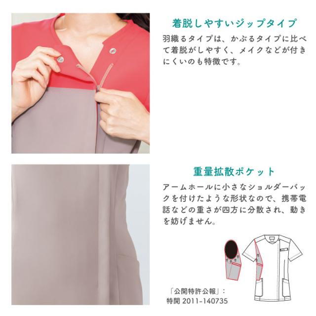 艶やかなバイカラーデザインの着脱しやすいジップスクラブ(R)。