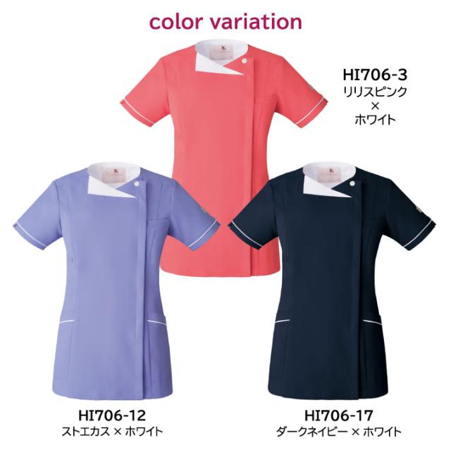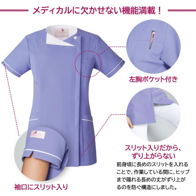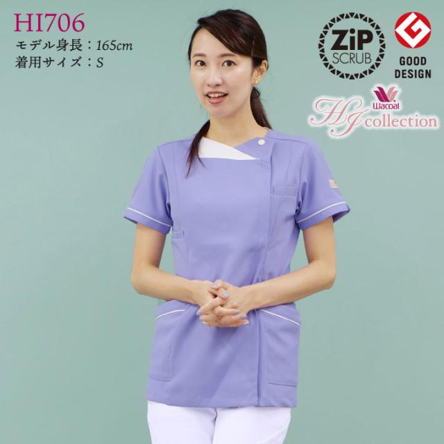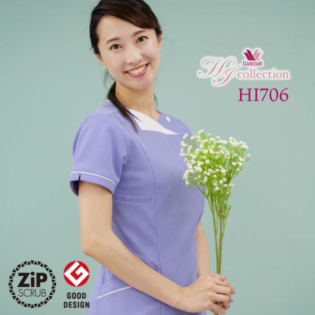 HI706 ワコール ZiP SCRUB 羽織って着るジップスクラブ フォーク スクラブ 女性 医療 クリニック 歯科助手 看護師 美容 介護 事務