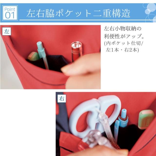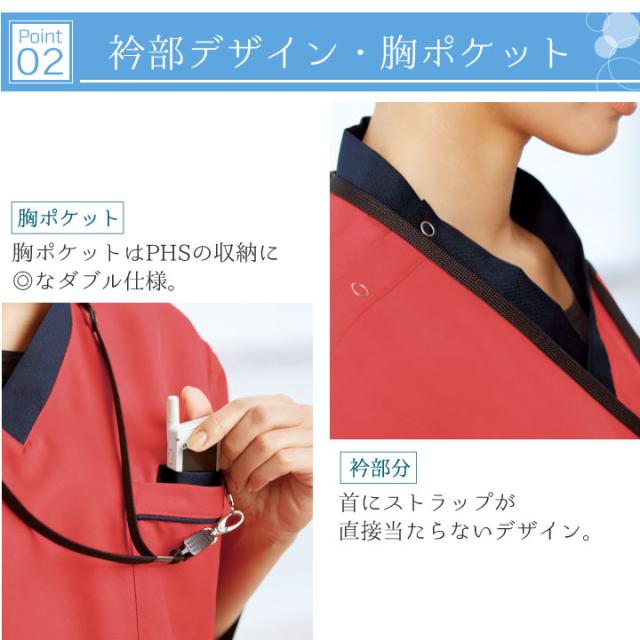 華やかながら清潔感のある印象で、病院はもちろん整骨院や介護施設など、様々な現場におすすめです。