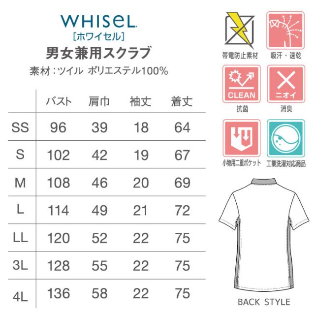 スクラブ ホワイセル 半袖 おしゃれ チームスクラブ 白衣 男性 女性 兼用 工業洗濯対応 自重堂 WHISEL ネコポス jd-wh11685