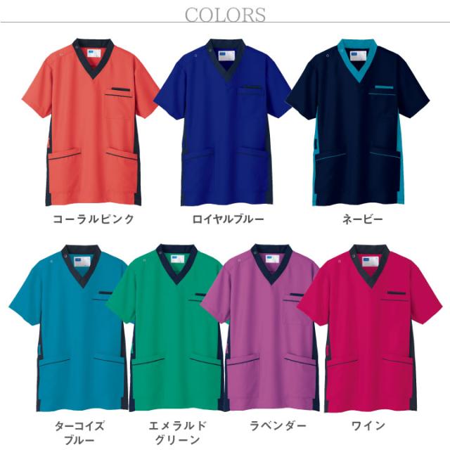 WH11685 ホワイセル 男女兼用スクラブ 配色使いの おしゃれ なスクラブ メンズ レディース ユニセックス 医療 美容 介護