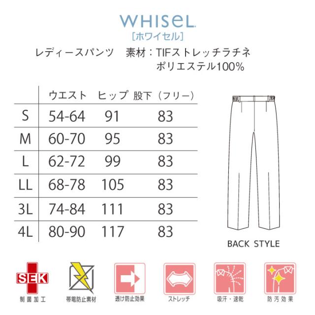 WH12012 ホワイセル レディースパンツ ストレッチ 医療 ナース服 シンプル すっきり きれい 脇ゴム