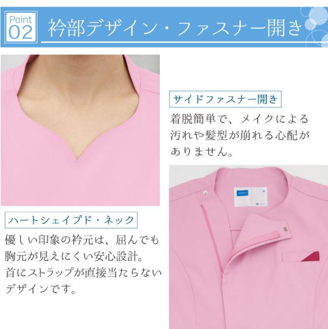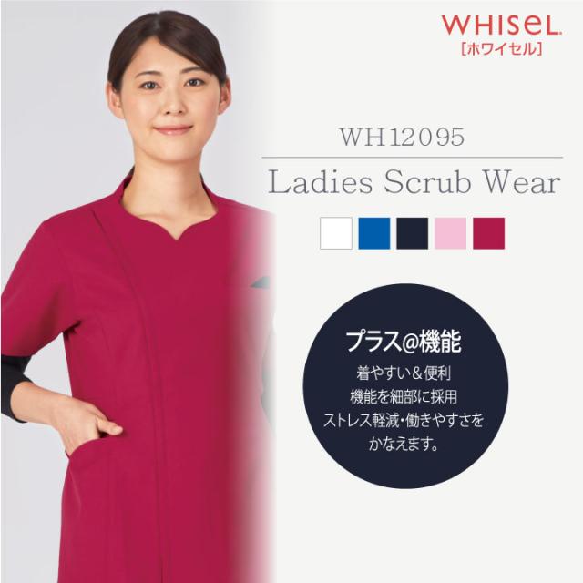 WH12095 ホワイセル スクラブ 美しいシルエットと優しい印象 ジップアップ 女性 レディース 医療 美容 介護