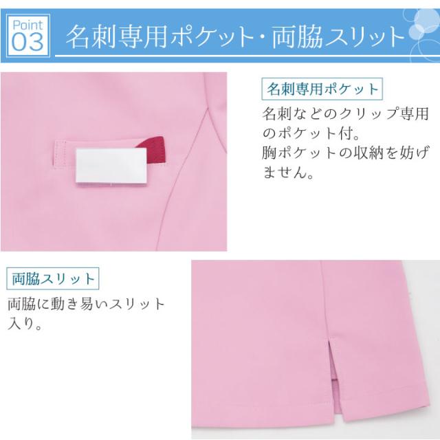胸に名札などのクリップ専用ポケット付き、胸ポケットの収納を妨げません。