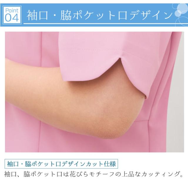 袖口・脇ポケットのカッティングは、花びらをモチーフにしており、優しい印象を与えます。