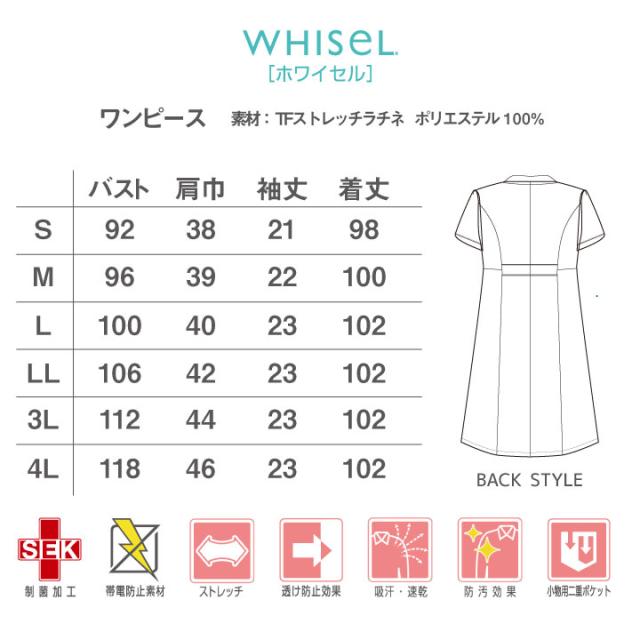 ワンピース ホワイセル 自重堂 半袖 白衣 作業着 メディカルウェア 医療 美容 介護 ユニフォーム レディース 防汚 帯電防止 透け防止 制菌 ポケット WHISEL jd-wh12200