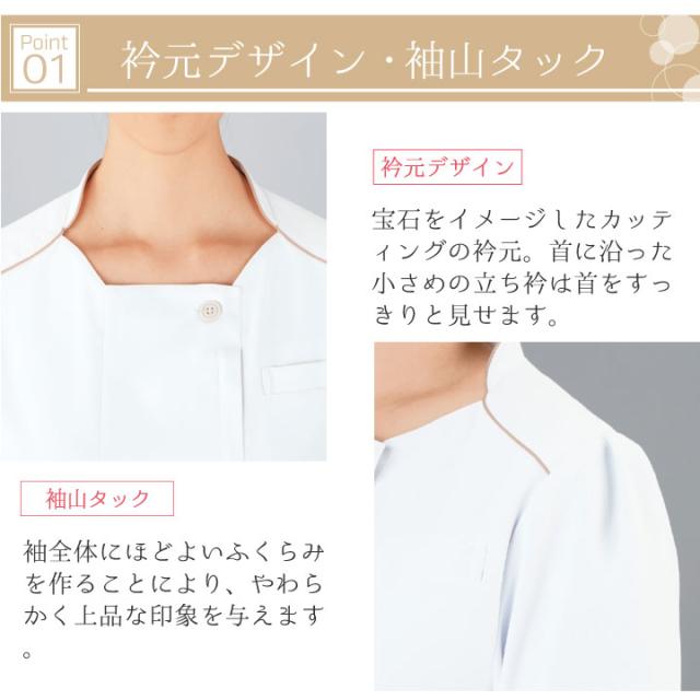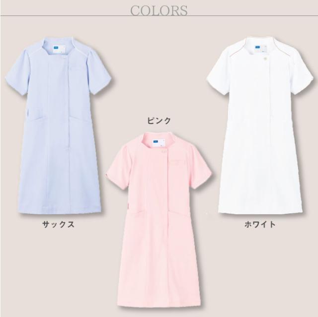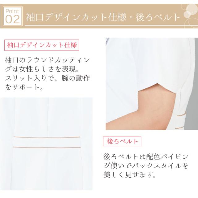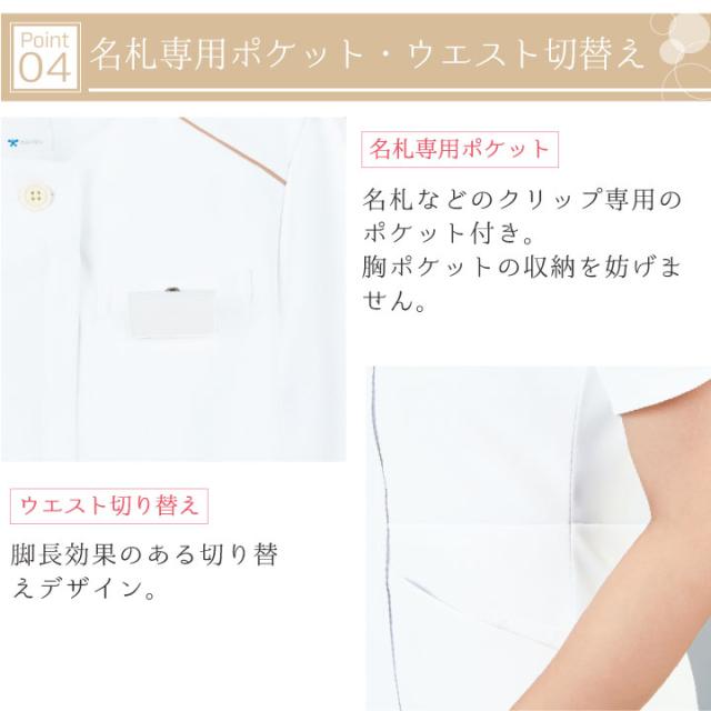 WH12200 ワンピース白衣 制服 作業服 女性 帯電防止 清楚 上品 おしゃれ かわいい 優しい 脚長効果 胸ポケット キーループ ポケット ベルト