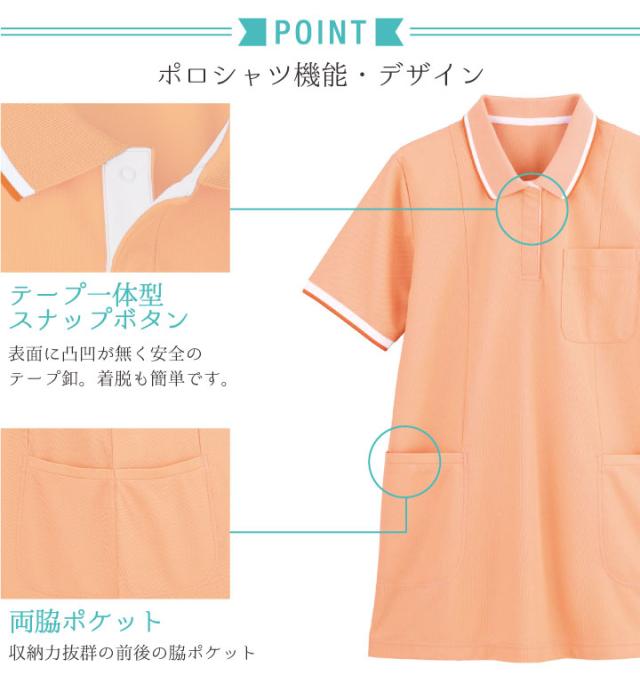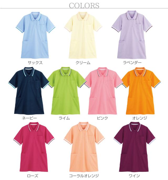 WH90338 ホワイセル 半袖ポロシャツ 吸汗 速乾 ロング丈 おしゃれ 豊富なカラーバリエーション レディース 医療 介護 ヘルパー