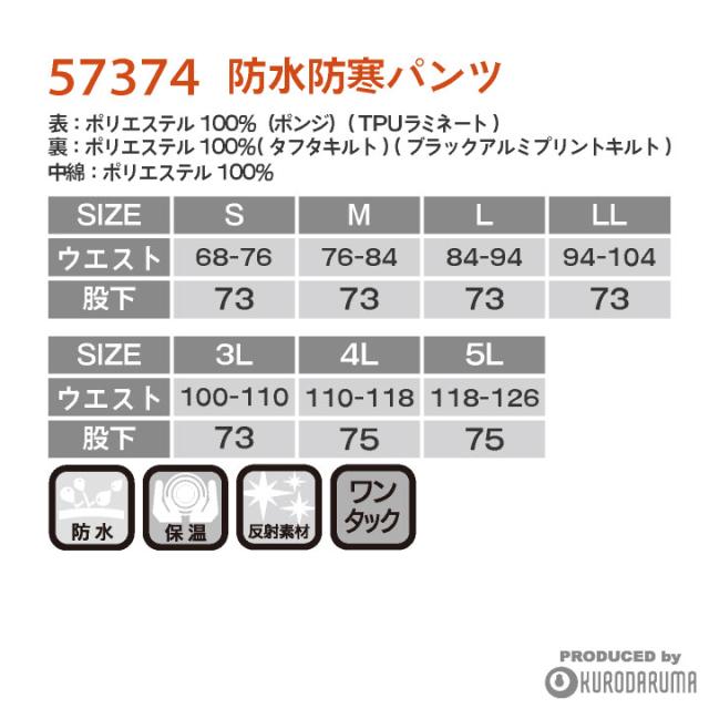 クロダルマ 防寒パンツ 防水 暖かい レインパンツ レインウェア 撥水 保温 防寒着 秋冬 寒さ対策 カジュアル かっこいい おしゃれ 合羽 雨具 作業服 作業着 作業ズボン 農業 キャンプ アウトドア 登山 雪かき 釣り バイク ブラック 黒 メンズ レディース kd-57374