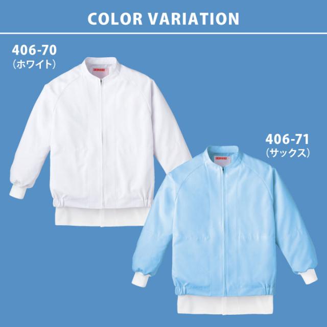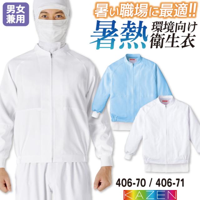 カゼン 高温作業 食品工場 白衣 長袖 ジャンパー 暑さ対策 涼しい 薄手 調理白衣 食品白衣 衛生白衣 衛生衣 作業着 作業服 メンズ レディース 制服 ユニフォーム ホワイト 白 ブルー サックス 青 大きいサイズ 5L 6L KAZEN kz-406-70