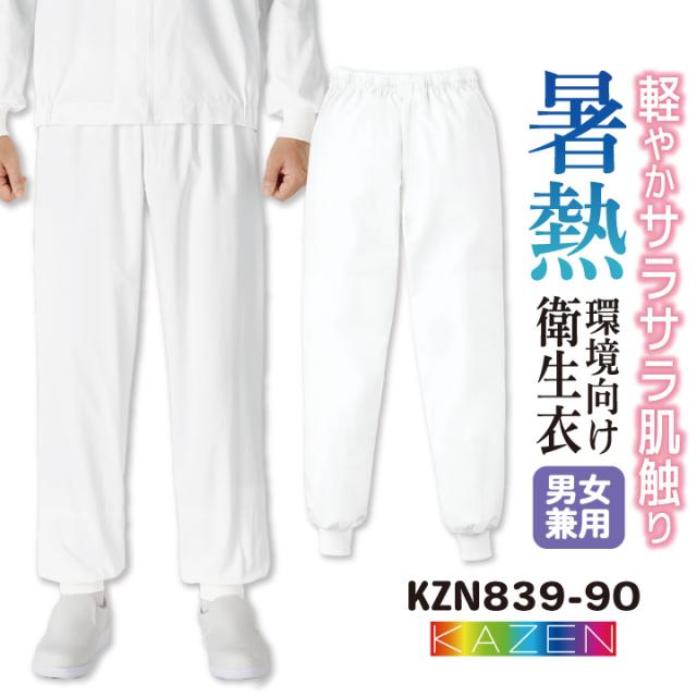 カゼン 常温作業 食品工場 白衣 総ゴム パンツ スラックス 調理白衣 食品白衣 衛生白衣 衛生衣 食品加工 衛生管理 作業着 作業服 メンズ レディース 制服 ユニフォーム ホワイト 白 大きいサイズ 5L 6L kz-kzn839-90