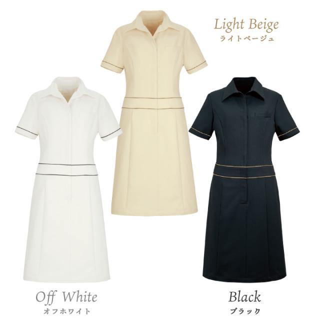 シロタコーポレーション ワンピース ライトベージュ ブラック ホワイト 透け防止 なめらかストレッチ ネイル 美容部員 サロンスタッフ 歯科衛生士 クリニック 受付 医療系 制服 ユニフォーム シロタ 半袖 sc-e3094