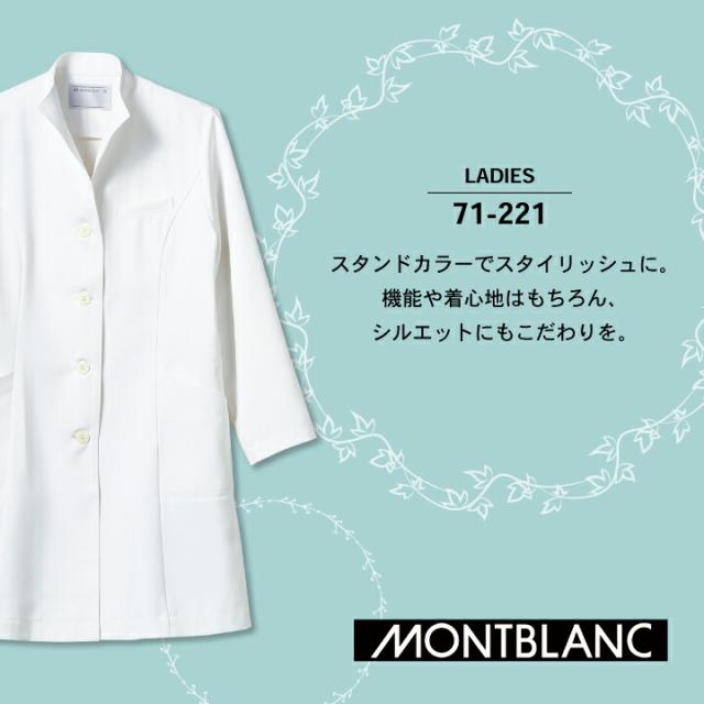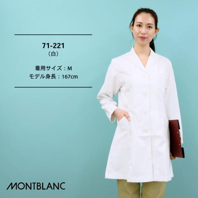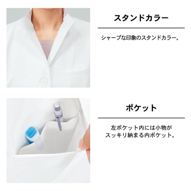 住商モンブラン ドクターコート 女性 レディース 長袖 スタンドカラー シングル シワになりにくい 医療用 白衣 医師 診察衣 病院 研究 実験衣 薬剤師 sm-71-221