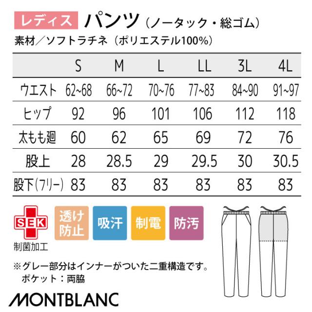 住商モンブラン レディースノータックパンツ ウエスト総ゴム仕様 医療用 看護師 ナース 介護士 訪問診療 ヘルパー 理学療法士 リハビリ 整骨院 整体師 歯科衛生士 デンタルクリニック ノータックパンツ sm-73-1191
