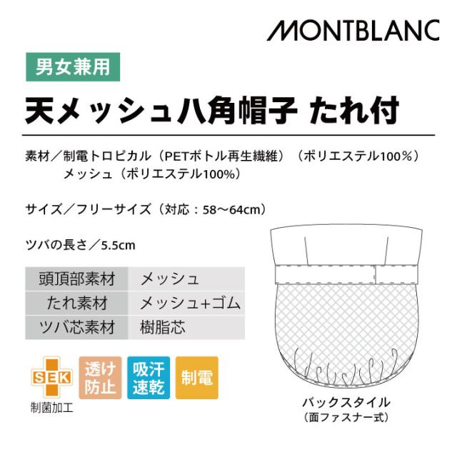 住商モンブラン 衛生帽子 天メッシュ八角帽子 たれ付 食品工場 白衣 調理白衣 食品白衣 衛生白衣 衛生衣 衛生管理 食品加工 食品製造 厨房 フードユニフォーム キャップ 制服 ネコポス 即日出荷 sm-9-1065