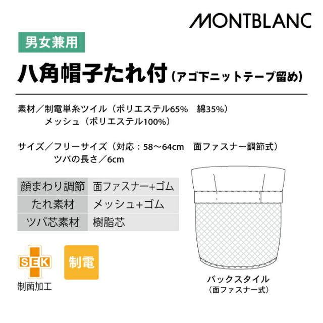 住商モンブラン 衛生帽子 八角帽子 たれ付 食品工場 白衣 調理白衣 食品白衣 衛生白衣 衛生衣 衛生管理 食品加工 食品製造 厨房 フードユニフォーム キャップ 制服 ネコポス sm-9-808
