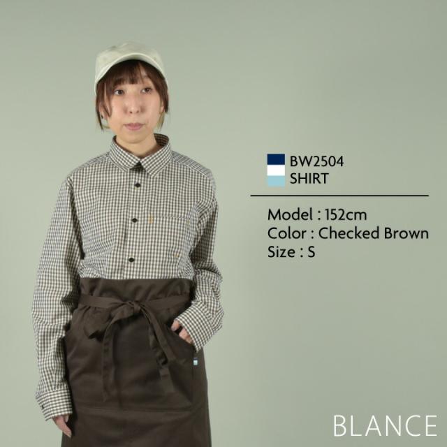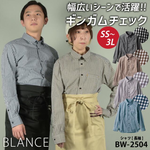 BW2504 長袖シャツ ギンガムチェック柄 ノーアイロン 男女兼用 ブラック ブラウン グレー ブルー 黒 茶色 青 白 SS S M L LL 3L BLANCE 住商モンブラン