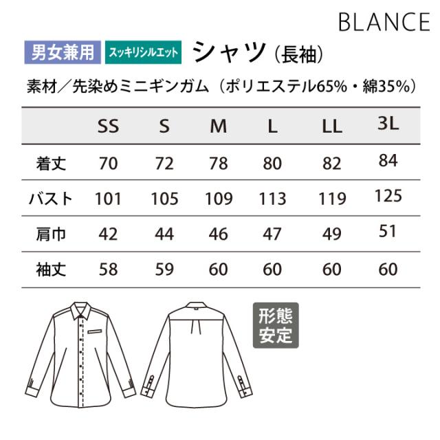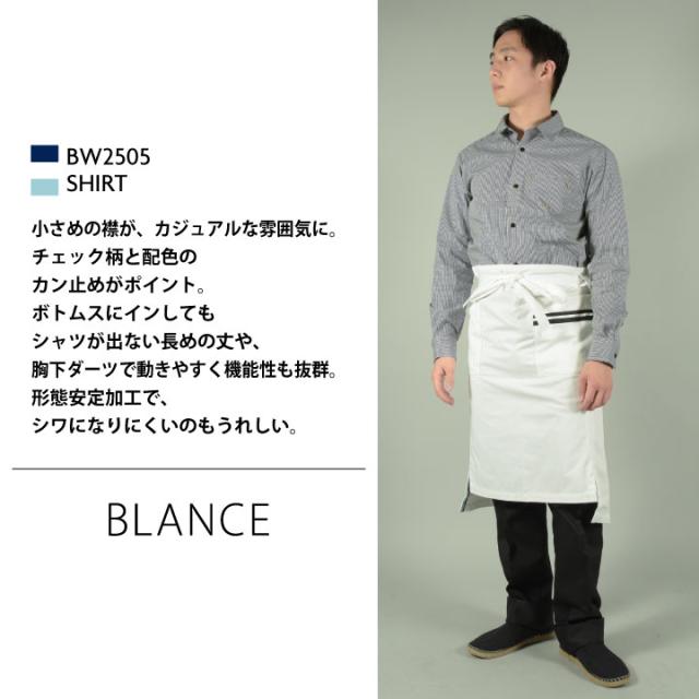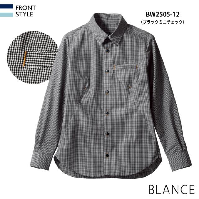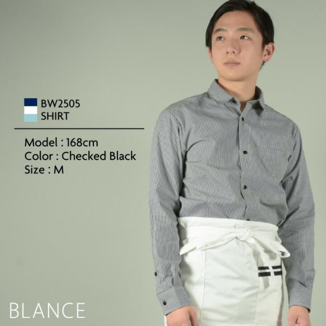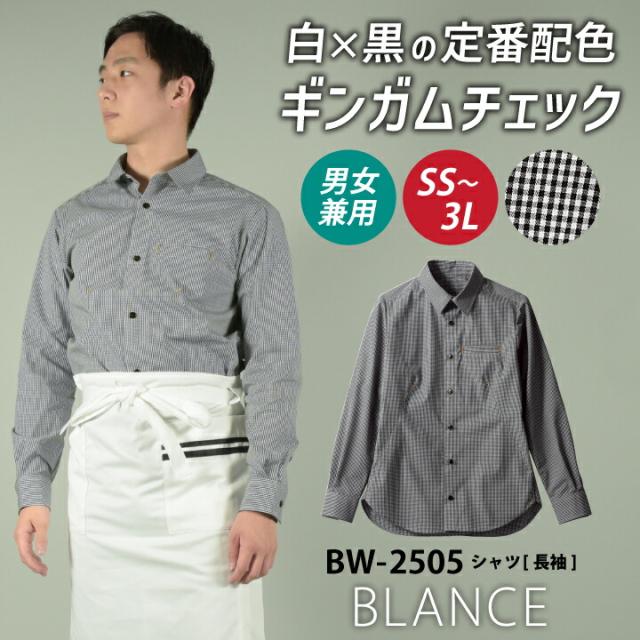 BW2505 長袖シャツ ギンガムチェック柄 ノーアイロン 男女兼用 ブラック 黒 白 SS S M L LL 3L BLANCE 住商モンブラン