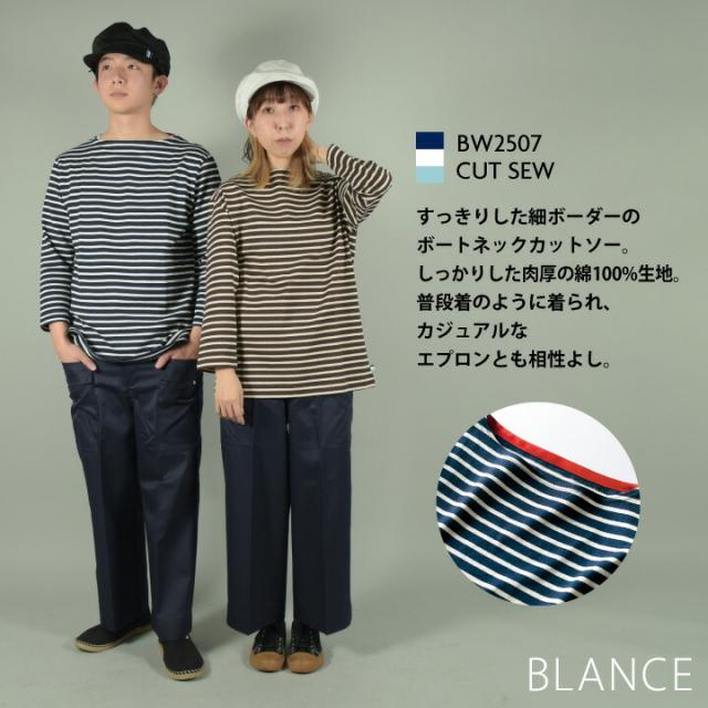 住商モンブラン ボーダー ボートネック Tシャツ 8分袖 長袖 綿 コットン 100% トップス ロンT カットソー メンズ レディース カフェ パン屋 ベーカリー レストラン ホール 花屋 ショップ 店員 接客 飲食 サービス ユニフォーム 制服 sm-bw2507