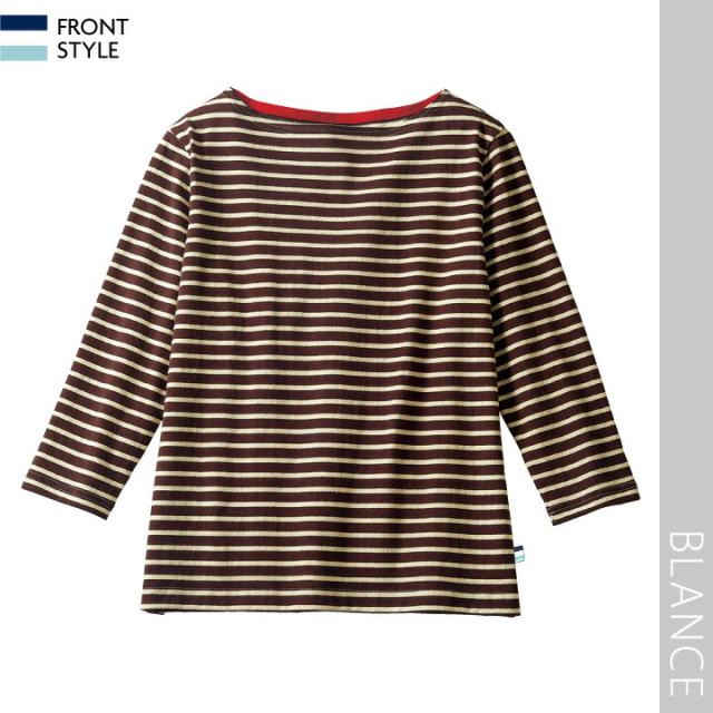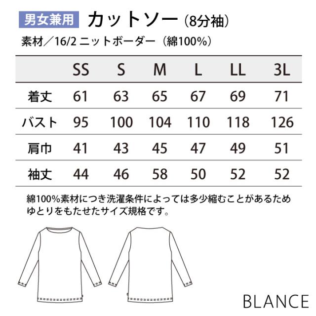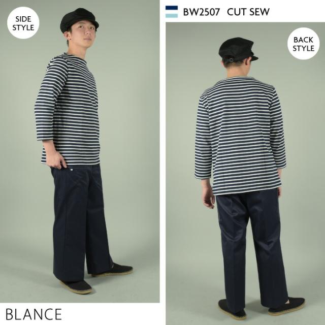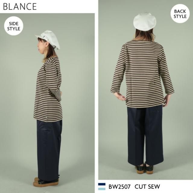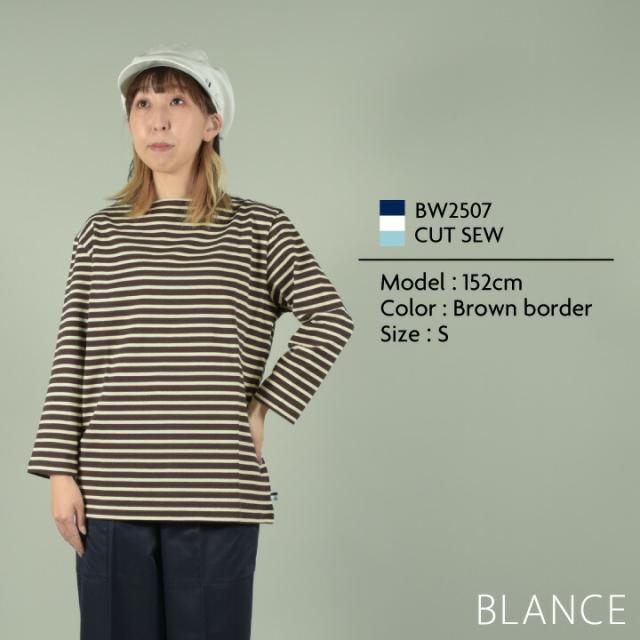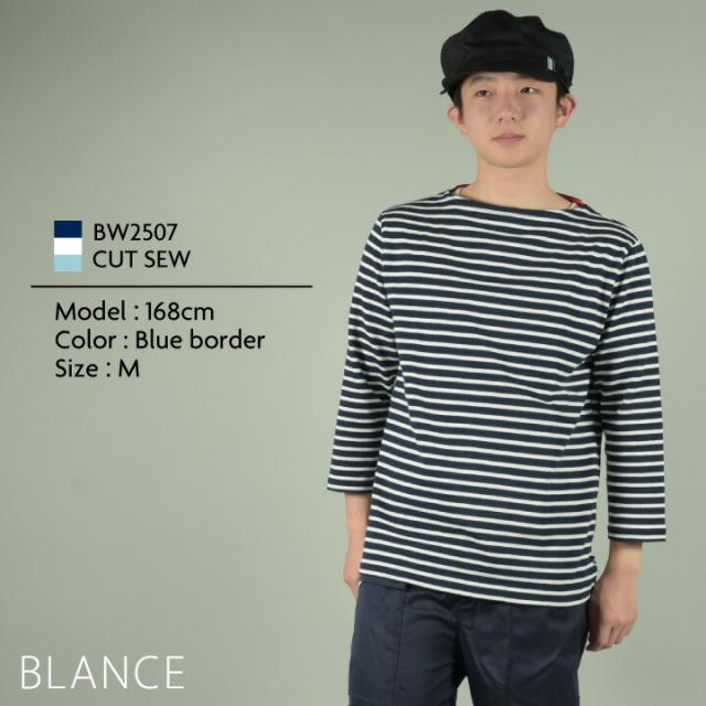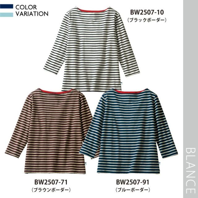 BW2507 カットソー 8分袖 綿100% 厚手 ボーダー 男女兼用 ブラック ブラウン ブルー SS S M L LL 3L BLANCE 住商モンブラン